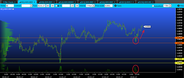 Таким образом, наши покупки пока остаются актуальными (до выступления Трампа). Открывать длинные позиции лучше после небольшой коррекции цены вниз, так как сейчас цена уже ушла довольно далеко от уровня и стоп лосс будет большой (а его надо ставить только за уровень!). Учитывая, что перед выступлением Трампа позицию надо будет закрыть, лучше дождаться входа с более коротким стоп лоссом, что бы была возможность взять сделку с соотношением риск/прибыль хотя бы 1 к 1. Поэтому данная сделка больше будет похожа на внутридневную торговлю чем на позиционную.