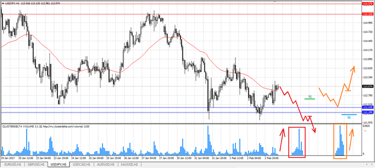Рост доллара США после выхода неплохих данных по рынку труда не смог переломить ситуацию касаемо пары USD/JPY, которая продолжает торговаться вблизи глобального уровня поддержки 112.28 – 112.43, где был сосредоточен крупный объем, толкнувший цену вверх.