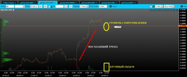 Тем не менее, учитывая сильный восходящий тренд, пока не стоит рассматривать сценарий открытия коротких позиций. Что касается покупок, то длинные позиции можно открывать после резкого роста цены и пробоя уровня сопротивления на повышенном объеме. Стоп лосс стоит ставить под пробойный объемный бар. Потенциал сделки более 110-120 пунктов.