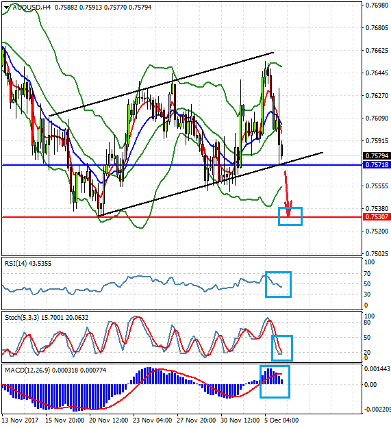 Прорыв парой уровня 0.7570 открывает ей дорогу вниз к 0.7530.