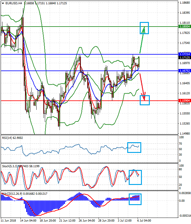 На позитивных данных из США пара может упасть к 1.1590-1.1600, преодолев отметку 1.1675. В тоже время более слабые значения могут подтолкнуть ее вверх к 1.1800 после преодоления уровня 1.1720.