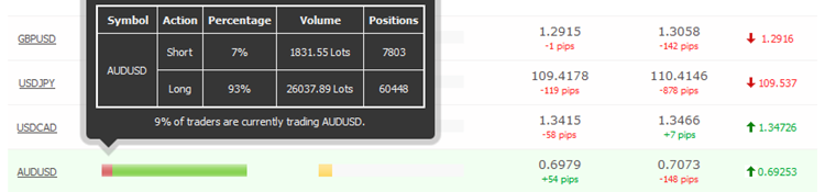 Что касается сентимента рынка, то данный технический индикатор полностью подтверждает наш сценарий открытия коротких позиций по австралийскому доллару, так как большинство розничных трейдеров находятся в длинных позициях (торговля против «толпы»).